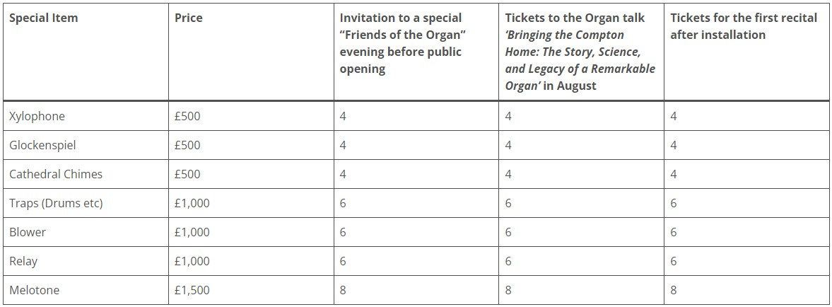 Special Item Compton Organ Sponsorship
